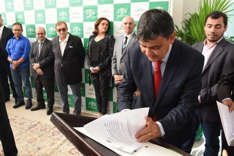 W. Dias assinando ordem de serviço dia 13 de fevereiro em Parnaíba