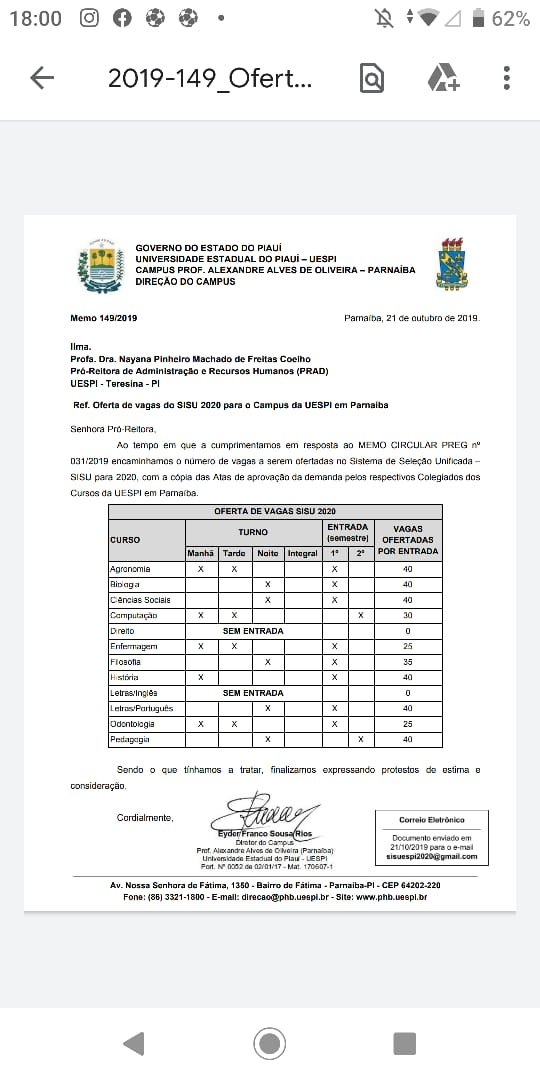 Qual a última? O começo do fim do curso de Direito do Campus Alexandre Alves de Oliveira, que não está oferecendo vagas para o próximo SISU. Também para o curso Letras/Inglês. Muitos pais nos procuraram para dizer da frustração dos filhos que estavam se preparando para tentar uma vaga no curso e que foram surpreendidos com a publicação de uma portaria mostrando que não há vagas no curso. A justificativa é só mais um atestado de incompetência deste governo e a falta de compromisso com a educação deste estado.